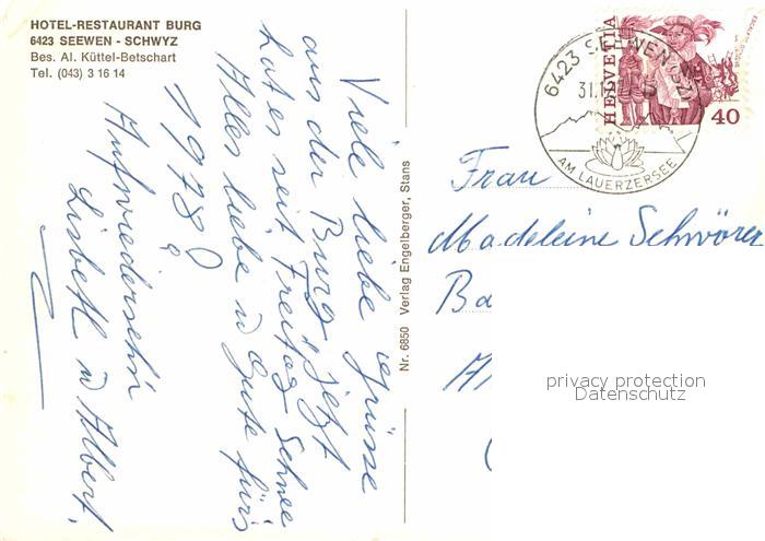 12659666 alte Postkarte Seewen SZ Hotel Burg postalisch gelaufen Erhaltung siehe scans [AndreD76] KatCode: 11470170500522
