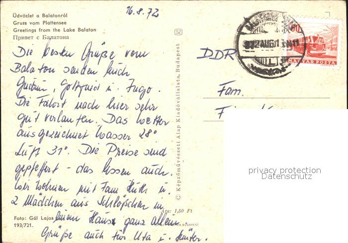 alte Postkarte Segelboote Balaton Plattensee postalisch gelaufen Erhaltung siehe scans