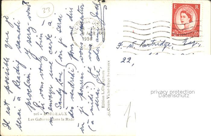 alte Postkarte Segelboote Bordeaux Les Gabarres dans la Rade postalisch gelaufen Erhaltung siehe scans