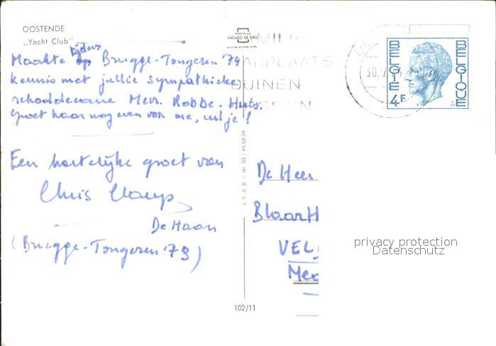 alte Postkarte Segelboote Faehre Oostende Yacht Club postalisch gelaufen Erhaltung siehe scans