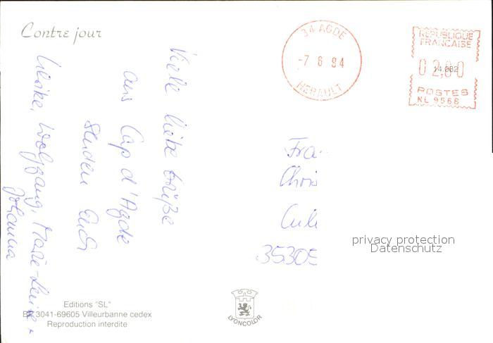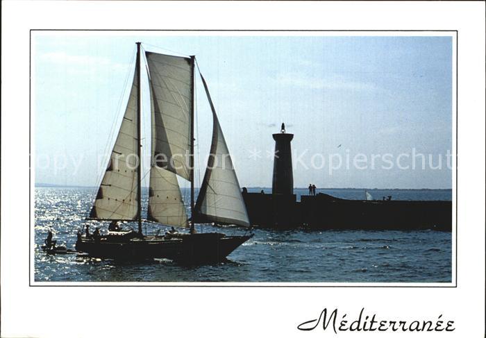 alte Postkarte Segelboote Leuchtturm Agde Herault postalisch gelaufen Erhaltung siehe scans
