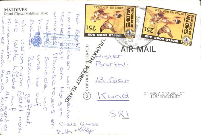 alte Postkarte Segelboote Maldives Dhoni postalisch gelaufen Erhaltung siehe scans