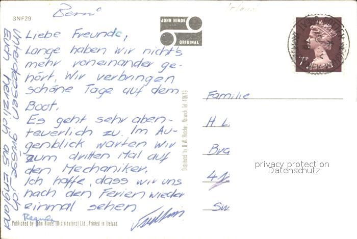 alte Postkarte Segelboote Sailing on the Broads postalisch gelaufen Erhaltung siehe scans
