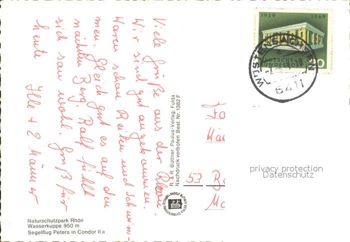 alte Postkarte Segelflug Gliding Vol-Voile Vuolo-a-Vela Volo-a-Vela– D-11-186 Rhoen Wasserkuppe postalisch gelaufen Erhaltung siehe scans