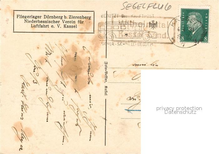 33577550 alte Postkarte Segelflug Gliding Vol-Voile Vuolo-a-Vela Volo-a-Vela– Fliegerlager D?rnberg Zierenberg postalisch gelaufen Erhaltung siehe scans [PaolaD17] KatCode: 22120000000300