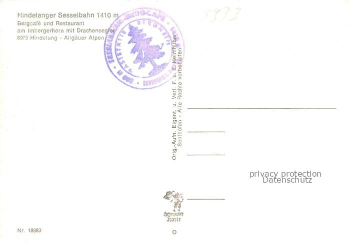 74151070 Segelflug Gliding Vol-Voile Vuolo-a-Vela Volo-a-Vela– Hindelanger Sesselbahn postalisch nicht gelaufen Erhaltung siehe scans [IrynaD87] KatCode: 22120000000300