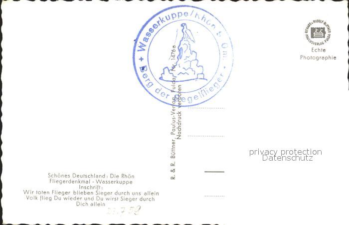 Segelflug Gliding Vol-Voile Vuolo-a-Vela Volo-a-Vela– Wasserkuppe Rhoen Fliegerdenkmal postalisch nicht gelaufen Erhaltung siehe scans