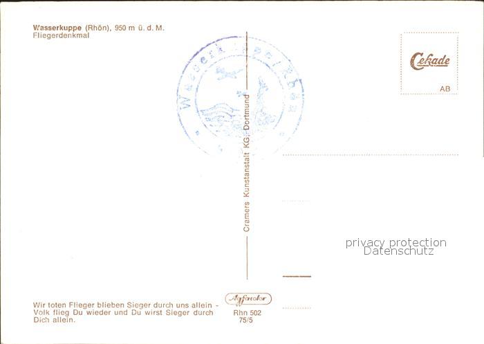 Segelflug Gliding Vol-Voile Vuolo-a-Vela Volo-a-Vela– Wasserkuppe Rhoen Fliegerdenkmal postalisch nicht gelaufen Erhaltung siehe scans