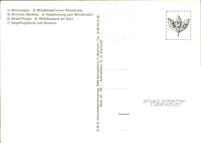 Segelflug Gliding Vol-Voile Vuolo-a-Vela Volo-a-Vela– Wasserkuppe Rhoen Modellflieger Segelflugschule postalisch nicht gelaufen Erhaltung siehe scans