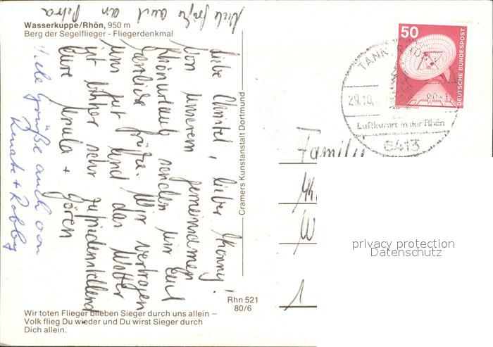 72329644 Segelflug Gliding Vol-Voile Vuolo-a-Vela Volo-a-Vela– Wasserkuppe Rhön Fliegerdenkmal KatCode 22120000000300