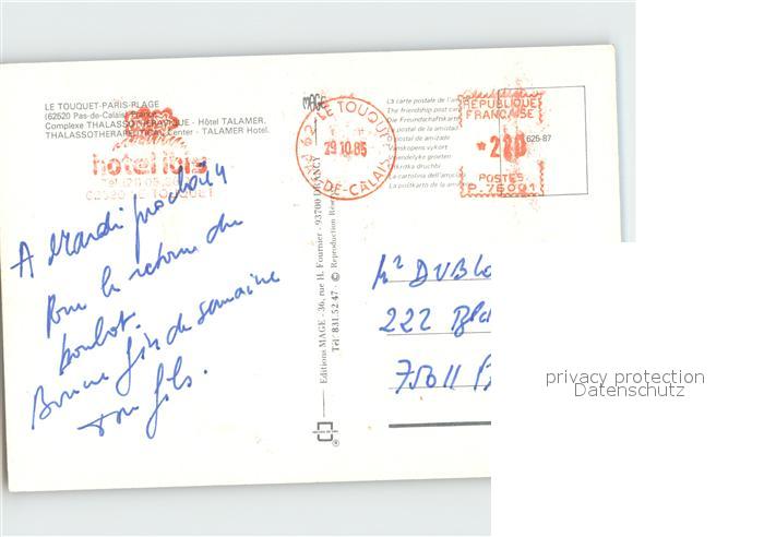 alte Postkarte Segeln Strandsegeln Le-Teoquet-Paris-Plage Hotel Talamer postalisch gelaufen Erhaltung siehe scans