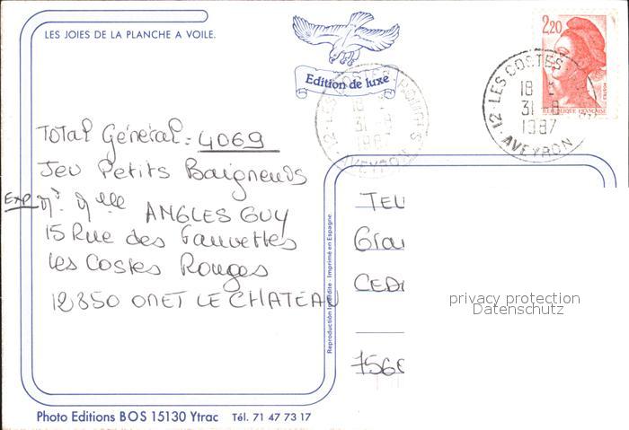 alte Postkarte Segeln Windsurfen Planche a Voile postalisch gelaufen Erhaltung siehe scans