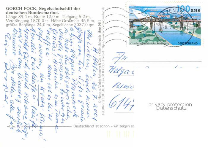 alte Postkarte Segelschiffe Gorch Fock Deutsche Bundesmarine postalisch gelaufen Erhaltung siehe scans [PaolaD17]
