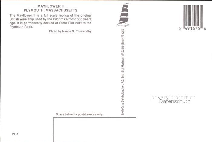 Segelschiffe Mayflower II Plymouth Massachusetts postalisch nicht gelaufen Erhaltung siehe scans [PaolaD17]