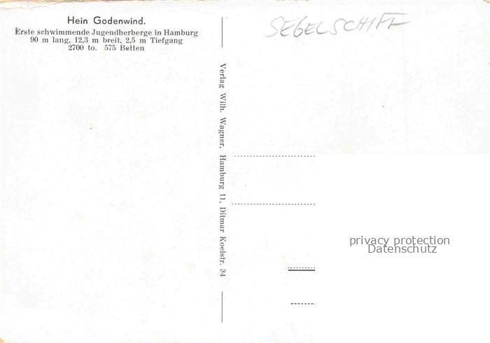 74036376 Segelschiffe Sailing Ship Navire a Voiles Barco de Vela– Hamburg Hein Godenwing postalisch nicht gelaufen Erhaltung siehe scans [SanaeD93] KatCode: 22480000000900