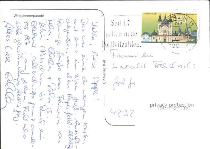 alte Postkarte Segelschiffe Segelboote Windjammerparade postalisch gelaufen Erhaltung siehe scans