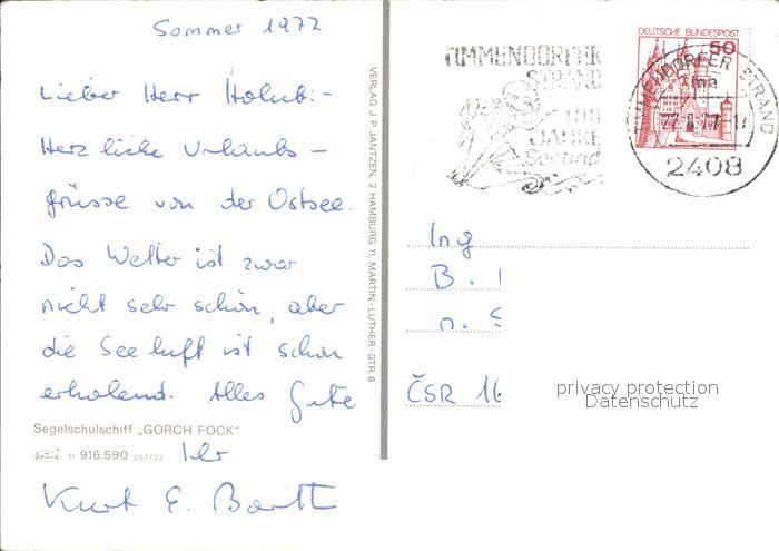 alte Postkarte Segelschiffe Segelschulschiff Gorch Fock postalisch gelaufen Erhaltung siehe scans