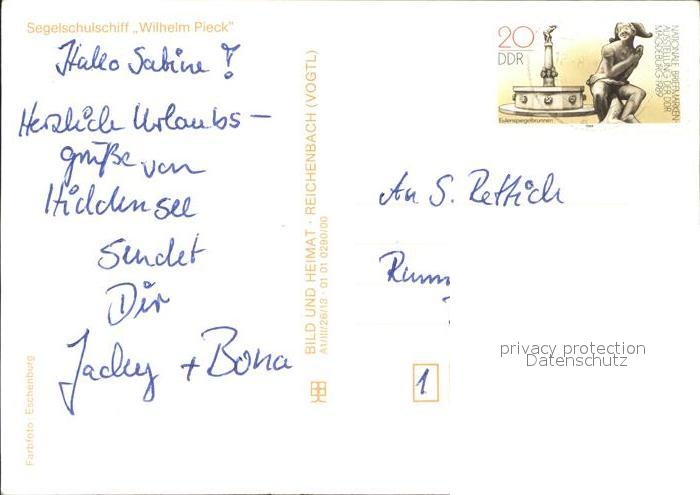 alte Postkarte Segelschiffe Segelschulschiff Wilhelm Pieck postalisch gelaufen Erhaltung siehe scans