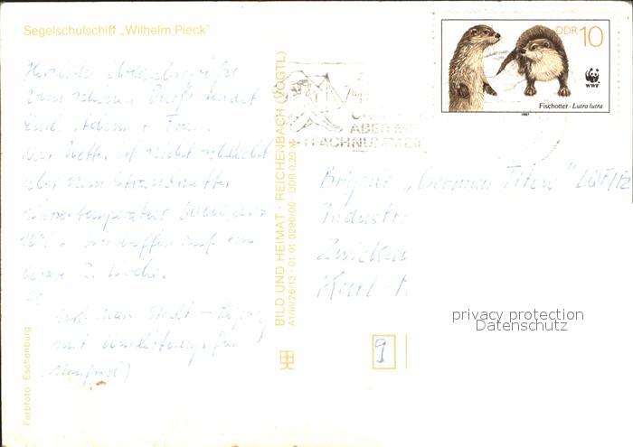 alte Postkarte Segelschiffe Segelschulschiff Wilhelm Pieck postalisch gelaufen Erhaltung siehe scans