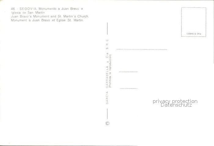 Segovia Monument Juan Bravo Iglesia San Martin postalisch nicht gelaufen Erhaltung siehe scans