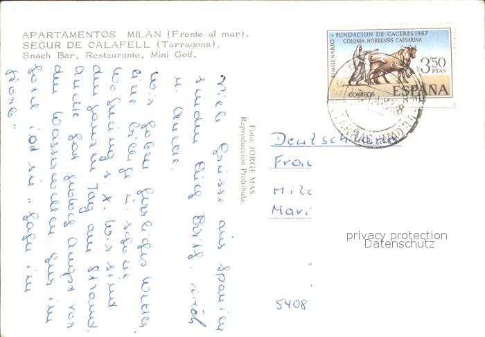 old postcard Segur de Calafell Apartamentos Milan Mini-Golf Restaurante postalisch gelaufen Erhaltung siehe scans