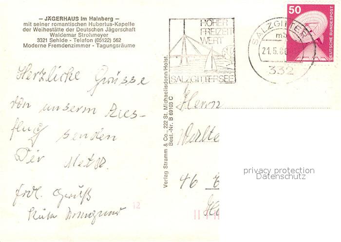 73091574 alte Postkarte Sehlde Leine Jaegerhaus Hainberg Hubertuskapelle postalisch gelaufen Erhaltung siehe scans [KathaD81] KatCode: 11110003254014