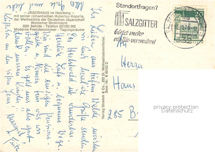 73641585 alte Postkarte Sehlde Salzgitter Hotel Restaurant Jaegerhaus im Hainberg Wildgehege postalisch gelaufen Erhaltung siehe scans [FriedD77] KatCode: 11110003158028