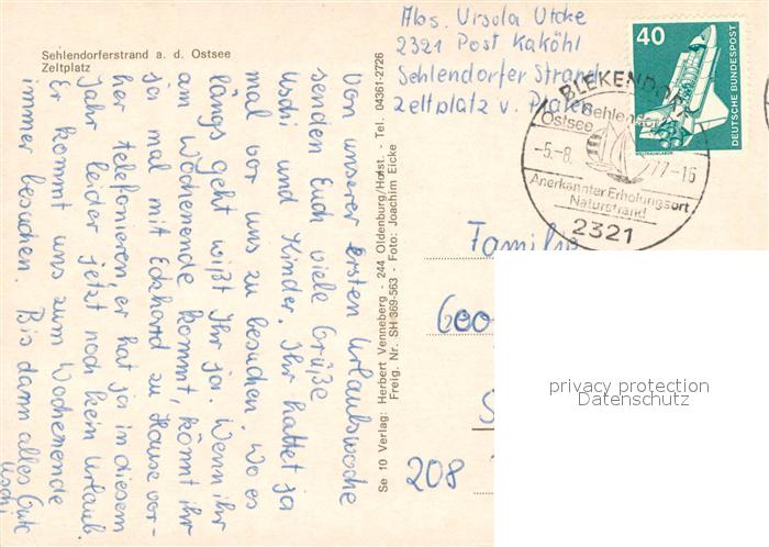73686630 alte Postkarte Sehlendorferstrand Campingplatz Fliegeraufnahme postalisch gelaufen Erhaltung siehe scans [WerneD78] KatCode: 11110001057007