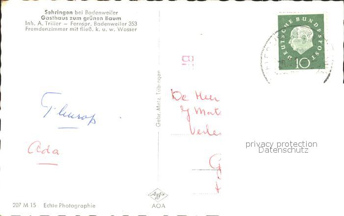 72085177 alte Postkarte Sehringen Gasthaus zum Gruenen Baum postalisch gelaufen Erhaltung siehe scans KatCode: 11110008315007