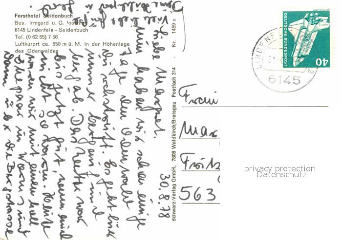 72672979 alte Postkarte Seidenbuch Forsthotel postalisch gelaufen Erhaltung siehe scans [AndreD76] KatCode: 11110006431015