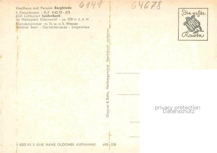 72868420 Seidenbuch Pension Bergfriede Gastraeume Brunnen Garten postalisch nicht gelaufen Erhaltung siehe scans [WerneD78] KatCode: 11110006431015