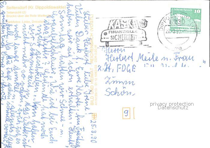 72409670 alte Postkarte Seifersdorf Dippoldiswalde Bruecke ueber Rote Weisseritz postalisch gelaufen Erhaltung siehe scans KatCode: 11110014290080