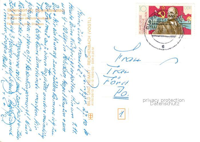 73606886 alte Postkarte Seifersdorf Erzgebirge Teilansichten Bruecke ueber die Rote Weisseritz postalisch gelaufen Erhaltung siehe scans [WerneD78] KatCode: 11110014188125