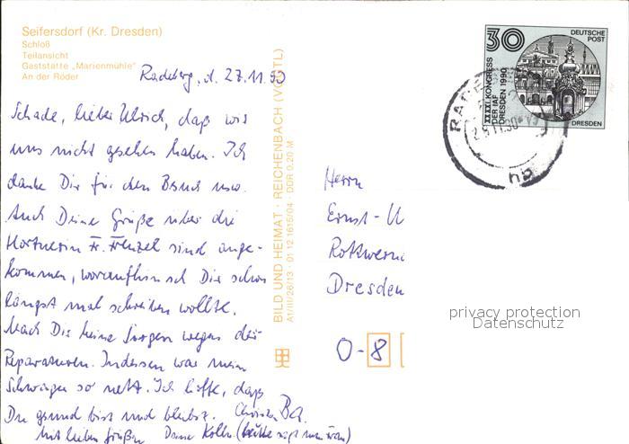 72358410 alte Postkarte Seifersdorfer Tal Schloss Teilansicht Gaststaette Marienmuehle An der Roeder postalisch gelaufen Erhaltung siehe scans KatCode: 11110014292445