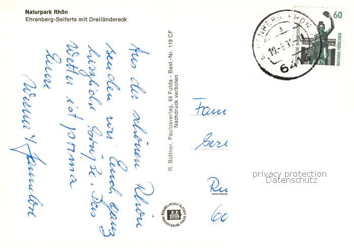 73214531 alte Postkarte Seiferts mit Dreilaendereck Naturpark Rhoen postalisch gelaufen Erhaltung siehe scans [FriedD77] KatCode: 11110006631005