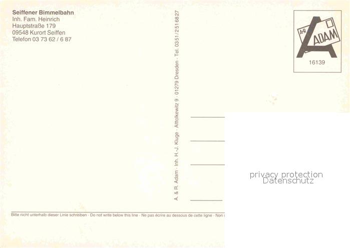72859152 Seiffen Erzgebirge Bimmelbahn postalisch nicht gelaufen Erhaltung siehe scans [AndreD76] KatCode: 11110014181350