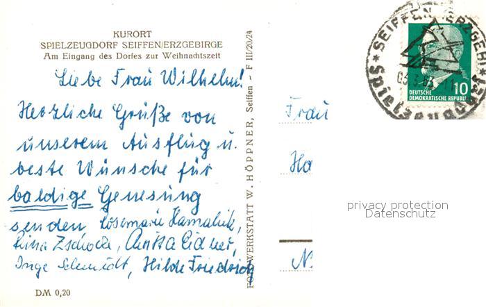 73031438 alte Postkarte Seiffen Erzgebirge Dorfeingang Pferdeschlitten postalisch gelaufen Erhaltung siehe scans [WerneD78] KatCode: 11110014181350