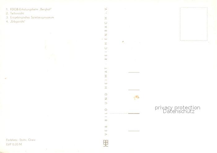 73084952 Seiffen Erzgebirge Erholungsheim Berghof Spielzeugmuseum Erbgericht postalisch nicht gelaufen Erhaltung siehe scans [NatalD47] KatCode: 11110014181350