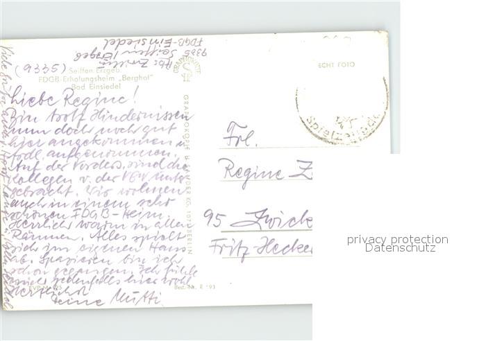72136151 alte Postkarte Seiffen Erzgebirge FDGB Erholungsheim Berghof Bad Einsiedel postalisch gelaufen Erhaltung siehe scans KatCode: 11110014181350
