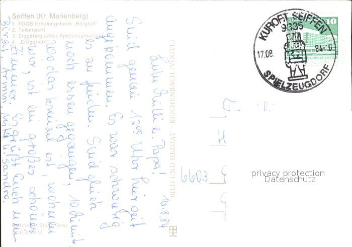 72247105 alte Postkarte Seiffen Erzgebirge FDGB Erholungsheim Berghof Spielzeugmuseum HO Imbiss Erbgericht postalisch gelaufen Erhaltung siehe scans KatCode: 11110014181350