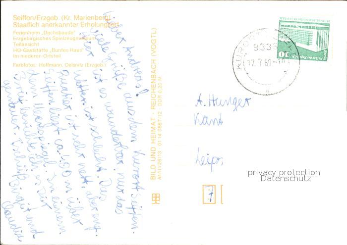 72375620 alte Postkarte Seiffen Erzgebirge Ferienheim Dachsbaude Spielzeugmuseum Gaststaette Buntes Haus postalisch gelaufen Erhaltung siehe scans KatCode: 11110014181350