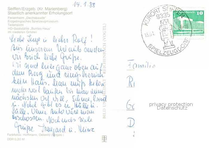 72631872 alte Postkarte Seiffen Erzgebirge Ferienheim-Dachsbaude Spielzeugmuseum Restaurant-Buntes-Haus postalisch gelaufen Erhaltung siehe scans [LiesaD40] KatCode: 11110014181350