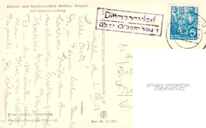 72633714 alte Postkarte Seiffen Erzgebirge Gesamtansicht Kurort Spielzeugdorf mit Schwartenberg postalisch gelaufen Erhaltung siehe scans [FriedD77] KatCode: 11110014181350