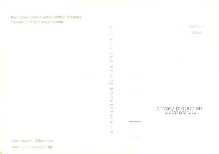 73096642 Seiffen Erzgebirge Heimat- und Spielzeugmuseum postalisch nicht gelaufen Erhaltung siehe scans [LiesaD40] KatCode: 11110014181350