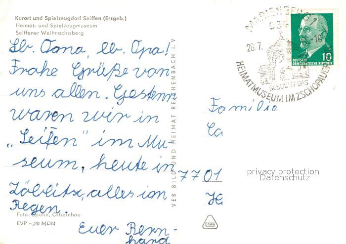 72987300 alte Postkarte Seiffen Erzgebirge Heimat und Spielzeugmuseum Seiffener Weihnachtsberg postalisch gelaufen Erhaltung siehe scans [WerneD78] KatCode: 11110014181350