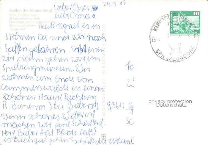 72382638 alte Postkarte Seiffen Erzgebirge HOG Buntes Haus Schwartenbergbaude Spielzeugmuseum postalisch gelaufen Erhaltung siehe scans KatCode: 11110014181350