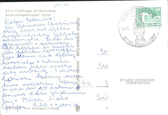 72115007 alte Postkarte Seiffen Erzgebirge Kirche postalisch gelaufen Erhaltung siehe scans KatCode: 11110014181350