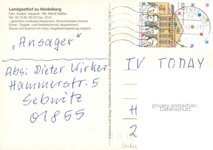 73657883 alte Postkarte Seiffen Erzgebirge Landgasthof zu Heidelberg Restaurant Fremdenzimmer postalisch gelaufen Erhaltung siehe scans [FriedD77] KatCode: 11110014181350