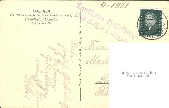 31840729 alte Postkarte Seiffen Erzgebirge Lanheim Hoehere Schule fuer Frauenberufe zu Leipzig postalisch gelaufen Erhaltung siehe scans KatCode: 11110014181350