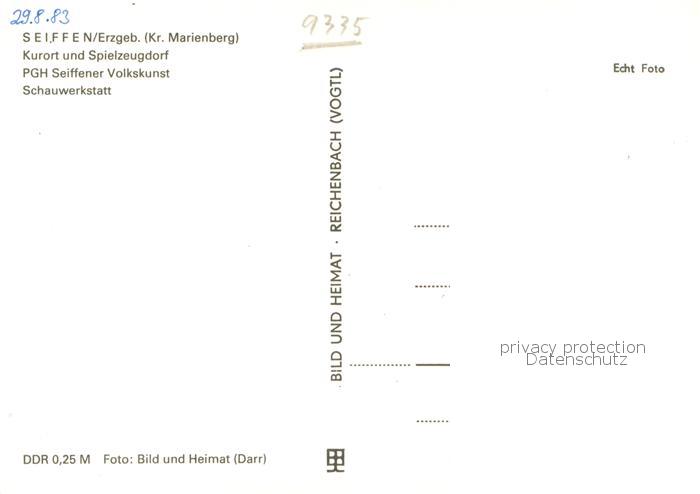 73759348 Seiffen Erzgebirge PGH Seiffener Volkskunst Schauwerkstatt Details postalisch nicht gelaufen Erhaltung siehe scans [FriedD77] KatCode: 11110014181350
